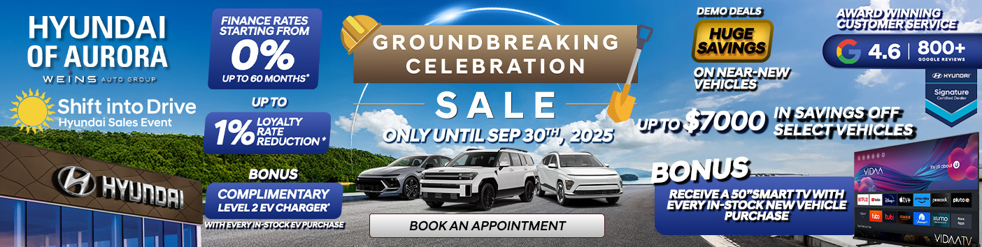 Hyundai of Aurora Groundbreaking Celebration Sale offers valid until Sep 30th, 2025. Offers subject to change or cancellation without notice.